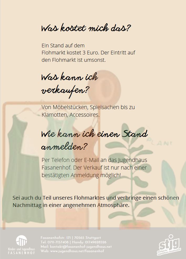 Flohmarkt im Kinder- und Jugendhaus Fasanenhof