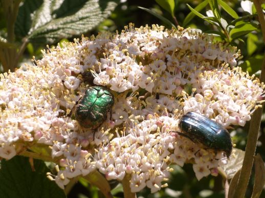 Beim traditionellen Spaziergang „Durch Wald und Feld in Sonnenberg“ mit dem Biologen Dr. Hellmut Wagner am 25.09.2021 entdeckte der Teilnehmer Günther Franz zwei grün schillernde Käfer am südwestlichen Waldrand des Haldenwaldes. Nicht den häufigen „Gemeinen Rosenkäfer“ sondern den viel selteneren „Große Rosenkäfer“ (Protaetia aeruginosa). Nur wenige Käfer können es hierzulande in punkto Farbenpracht mit dem Großen Rosenkäfer aufnehmen.
