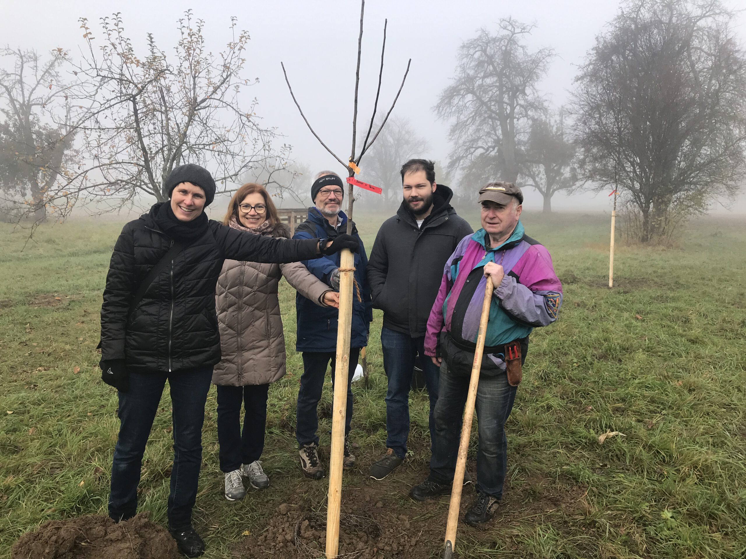 Via Presse und Info-Zettel hatten wir im Frühjahr 2021 in Kooperation mit dem Obst- und Gartenbauverein Möhringen die Streuobstwiesenbesitzer zwischen Sonnenberg und Möhringen zu einer Sammelbestellung von Obstbäumen aufgerufen. Ziel der Aktion: Lücken auf den Wiesen zu füllen und für nachwachsende Apfelbäume zu sorgen, wenn die alten, von Misteln befallenen Bäume absterben.