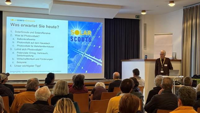 Am Freitag den 20.03.2026 fand der erste SolarScouts-Infoabend im Gemeindesaal der Sonnenbergkirche statt. Wir hatten volle Reihen, nach dem Vortrag eine sehr angeregte Diskussion mit vielen guten weiterführenden Fragen, und hinterher viele Gespräche in Kleingruppen.