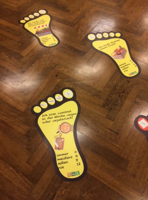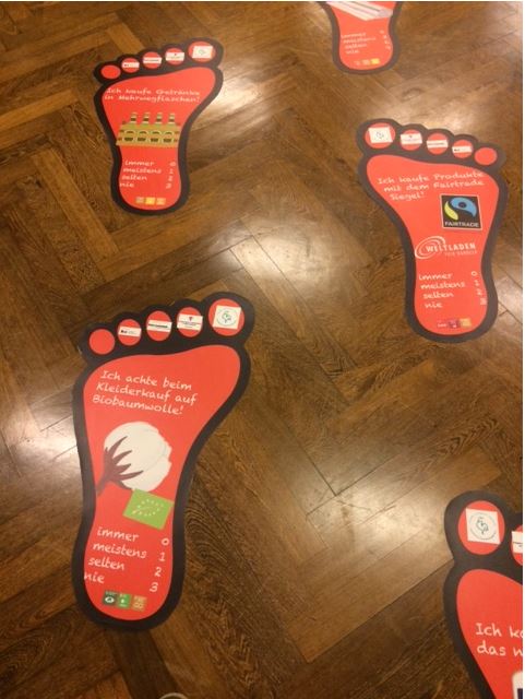Nach der Ideensammlung hatten wir alle die Möglichkeit, unseren ökologischen Fussabdruck zu messen, mit Hilfe von Fußspuren im Raum und einem kleinen, einfachen Fragebogen (Danke an Frau Schmauderer von der ev. Landeskirche). Die Aktion kam so gut an und hat uns so gefallen, dass wir planen, sie an unserem großen Umwelt- und Netzwerktag am 09.04.22 nochmal einzusetzen.